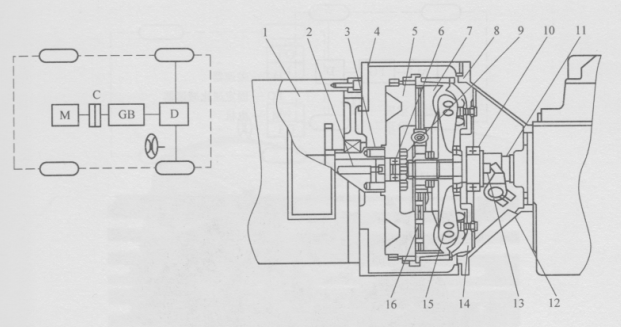 C-離合器??D-差速器??GB-變速器??M-驅(qū)動(dòng)電機(jī)