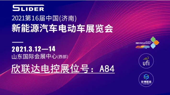 2021第十六屆中國(濟南)新能源汽車電動車展覽會即將于3月12-14日在山東國際會展中心舉辦,本屆展會以“新能源電動車智領未來”為主題,欣聯達電控將攜全線產品,與您相約中國新能源首展濟南展,年后初相見,一起“犇”向牛年。